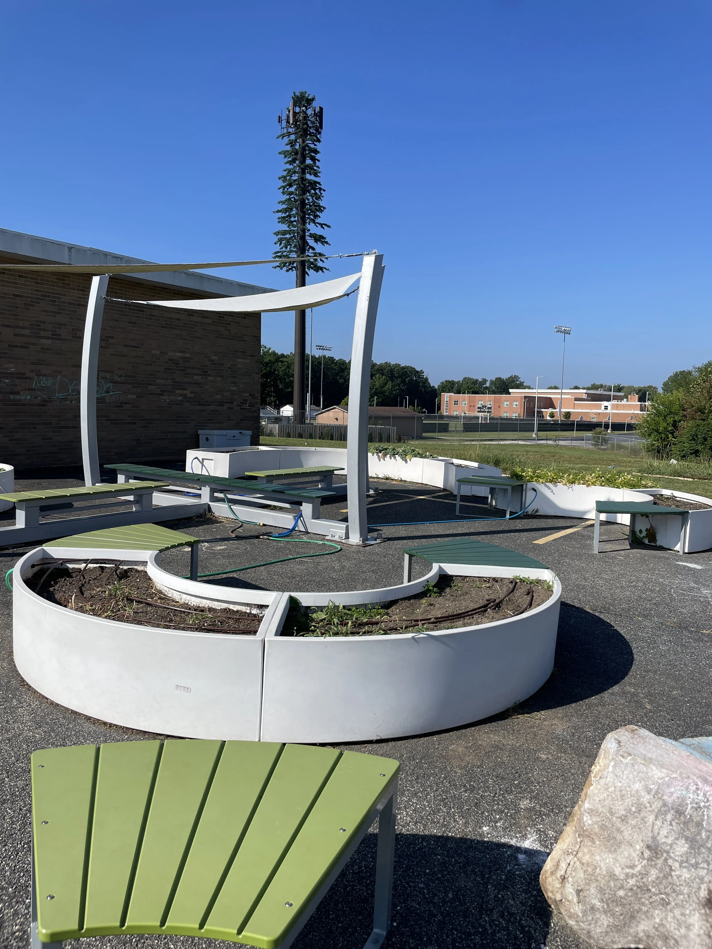Sensory Garden: The sensory courtyard will provide 3rd and 4th grade Green Team students space to demonstrate and engage other students in both caring for the plants and how to experience the plants through touch, smell, and sight.